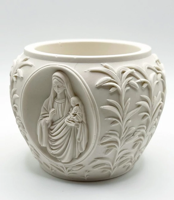 Ez a gyertyatartó finoman megmintázott, Szűz Mária alakját idézi, tiszteletet és áhítatot sugároz minden környezetben. Az esztétikus kialakítás mellett a gyertyatartó stabil és biztonságos tartást biztosít a gyertya számára.